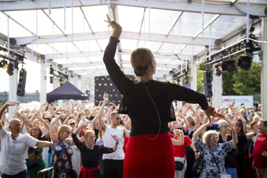 Mellan 18 - 18.45 dansar vi tillsammans på dansbanan Sprallen, Hammarby Slussväg. Dansbanan ligger bredvid Nyfiken Gul en liten bit från Eriksdalshallen.
